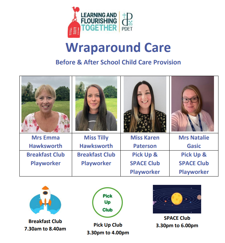 Our wraparound childcare provision offers parents and carers an opportunity to leave their children at school in a safe environment where they enjoy time playing with their friends and healthy snack times.